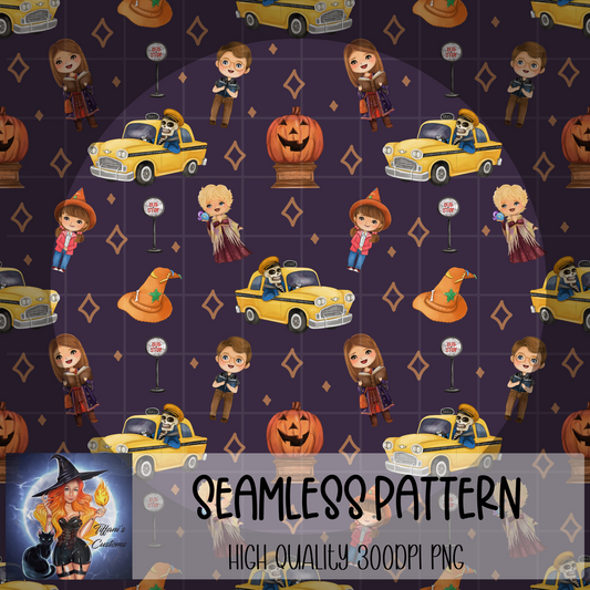 Hocus Pocus Icons Seamless Pattern: Digital Paper (300 DPI PNG) (Digital Download)
