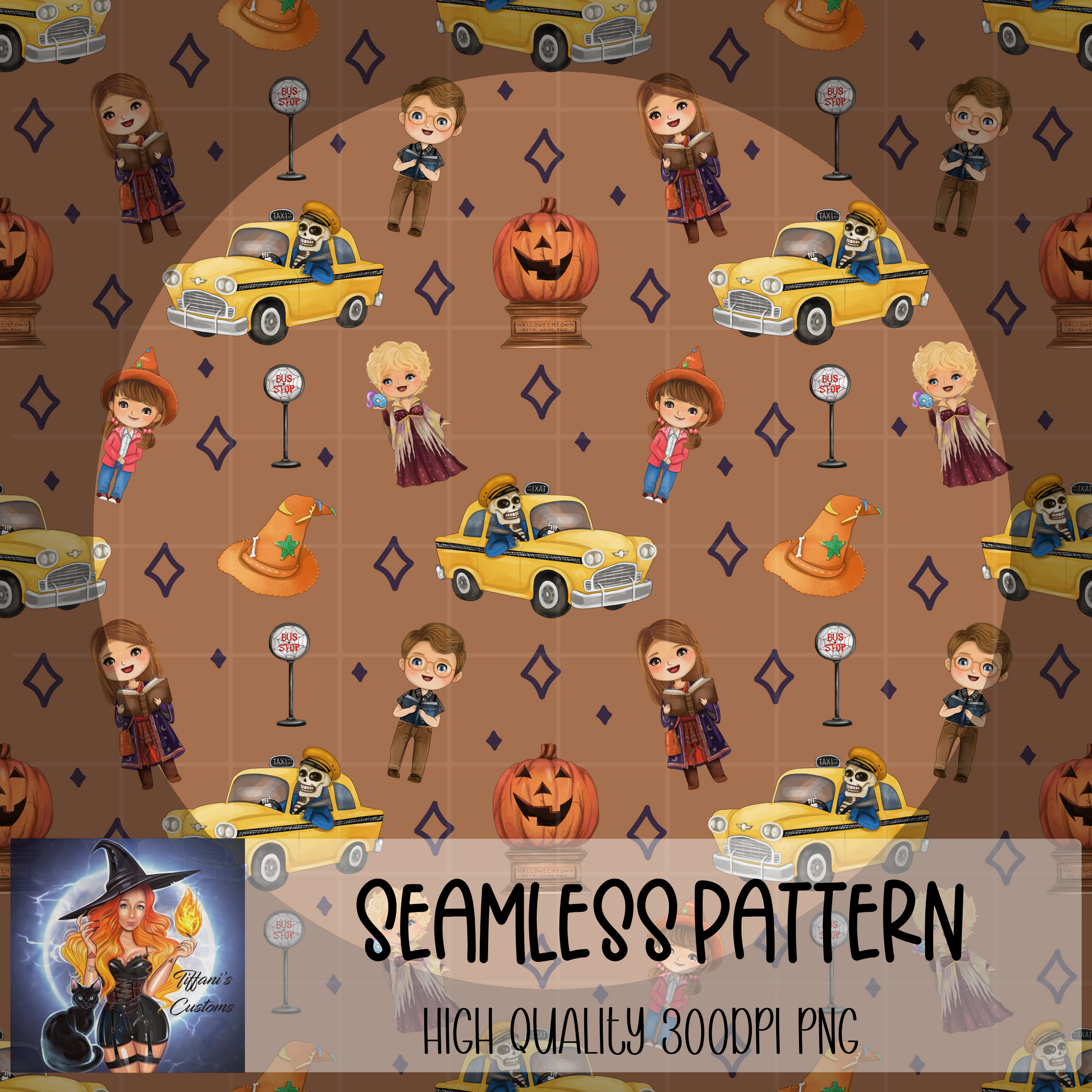 Halloween Town Tan Seamless Pattern: Digital Paper (300 DPI PNG) (Digital Download) 2 Patterns