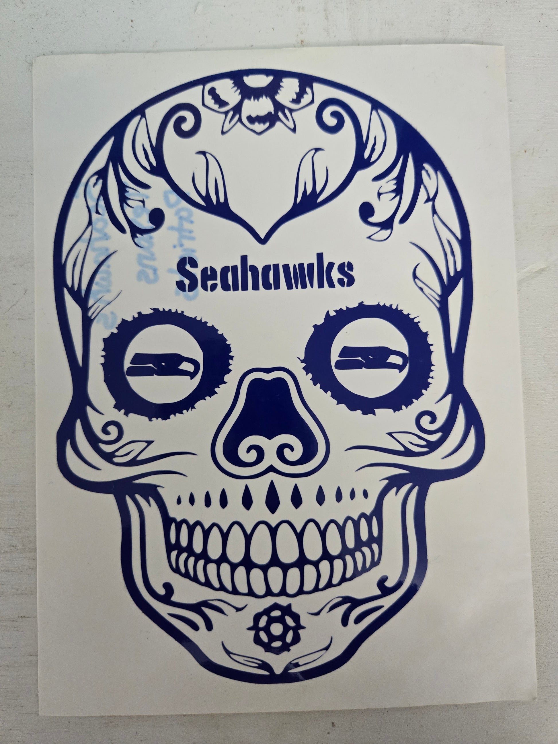 Vinyl Decal | Seahawks Sugar Skull | Cars, Laptops, Etc
